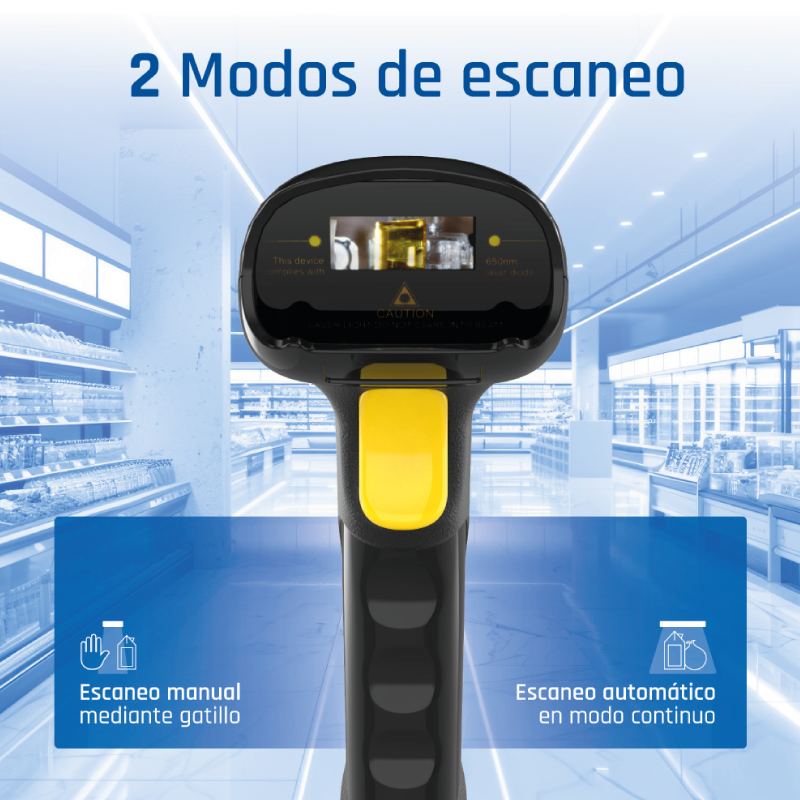 - Modos de activación: escaneo manual mediante disparo con gatillo, escaneo automático en modo continuo